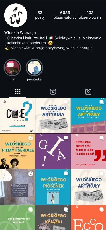 - dołącz do profilu na Instagramie, gdzie znajdziesz codzienną porcję języka i kultury włoskiej a także aktualności dotyczące nowych wpisów na stronie internetowej