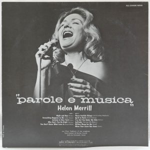 „Parole e Musica” to album wyjątkowy pod względem formy. Każdy utwór poprzedza narracja w języku włoskim, w której Fernando Caiati recytuje tłumaczenie tekstu piosenki. Dopiero potem Helen Merrill wykonuje ją po angielsku. Ten zabieg nadaje albumowi intymny, wręcz teatralny charakter i czyni go jednym z najoryginalniejszych nagrań w jej dyskografii. To także rzadkie połączenie literatury i jazzu, gdzie muzyka i słowo wchodzą w głęboką interakcję, tworząc niezwykle emocjonalne doświadczenie dla słuchacza.